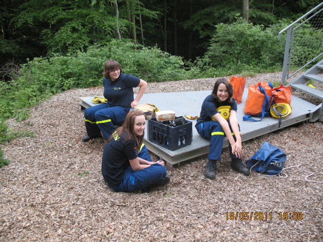 Bei dem Dienst der THW-Jugend Westerburg am 18.05.2011 standen die Rettungsmittel des Technischen Zuges auf dem Ausbildungsprogramm. Die anwesenden Jugendlichen machten dabei Bekanntschaft mit dem „Rollgliss-Gerät“, einem der verschiedenen Rettungsmittel des Technischen Zuges, welches beim THW als Auf- bzw. Abseilgerät zur Rettung von Personen Verwendung findet. Im Zusammenhang mit dem Einsatz dieses Gerätes wird auch die vorhandene Arbeitsschutz- und Rettungsausstattung verwendet. Die Arbeitsschutzausstattung dient zur Eigensicherung von Helfern bei der Durchführung von Rettungs- und Bergungsarbeiten in Gefahrensituationen während die Rettungsausstattung zum Retten von Personen aus Höhen oder Tiefen eingesetzt wird. Da ein Großteil der Jugendlichen bisher mit den Gerätschaften noch nicht gearbeitet hatte, diente die Veranstaltung dazu, nähere Kenntnisse zu vermitteln. Nach der üblichen Einweisung im theoretischen Teil wurden die einzelnen Komponenten in der Praxis getestet. Hierzu wurde der Aussichtsturm im Stöffel mit dem Gerätekraftwagen I (GKW I) angefahren, der sich als ideales Übungsobjekt erwiesen hat. Nach dem Aufbau eines Auslegers auf dem Turm konnten sich die Jugendlichen dann unter dem Einsatz des Rollgliss-Gerätes sowie der Arbeitsschutz- und Rettungsausstattung einmal selbst nach oben ziehen bzw. mit der Seilbremse sicher wieder ablassen. Für jeden eine wichtige Erfahrung um zu sehen, wie die Gerätschaften arbeiten und funktionieren. Da die Aktion sichtlich Spaß bereitete, kamen sogar Stoppuhren zum Einsatz, die die benötigte Zeit für das Auf- und Abseilen festhielten. Unfallfrei und mit neuen Kenntnissen ging es dann anschließend wieder zurück zur Unterkunft.