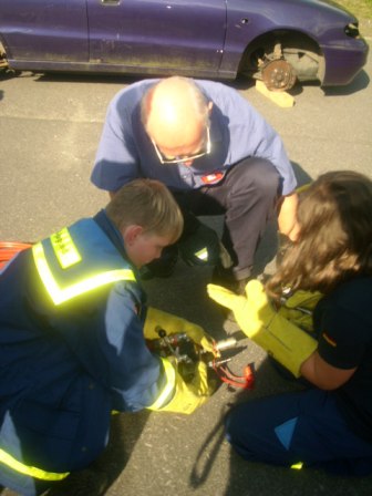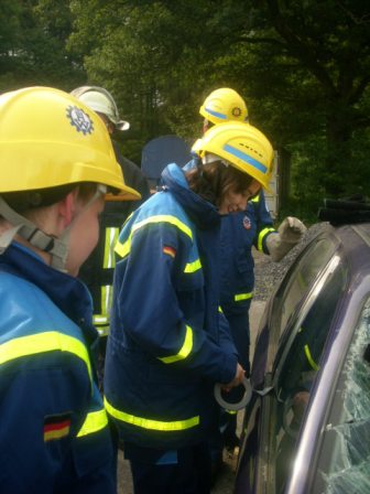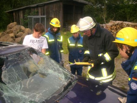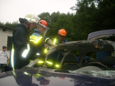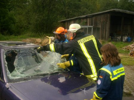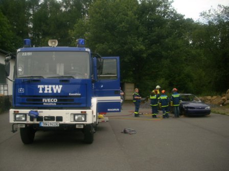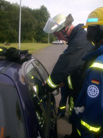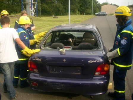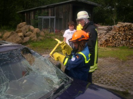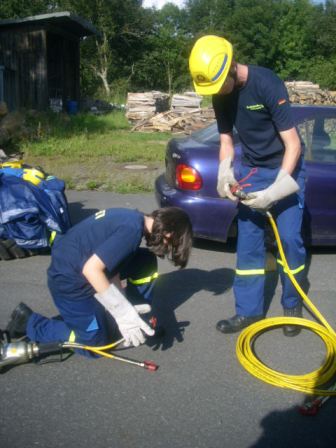 Bei den letzten beiden Jugenddiensten am 03. und 17.08.2011 wartete auf die Jugendgruppe des Ortsverbandes eine Überraschung. Zu Gast war die Feuerwehr, die die Öffnung von verunfallten Fahrzeugen mit Hilfe von Schere und Spreizer demonstrierte.