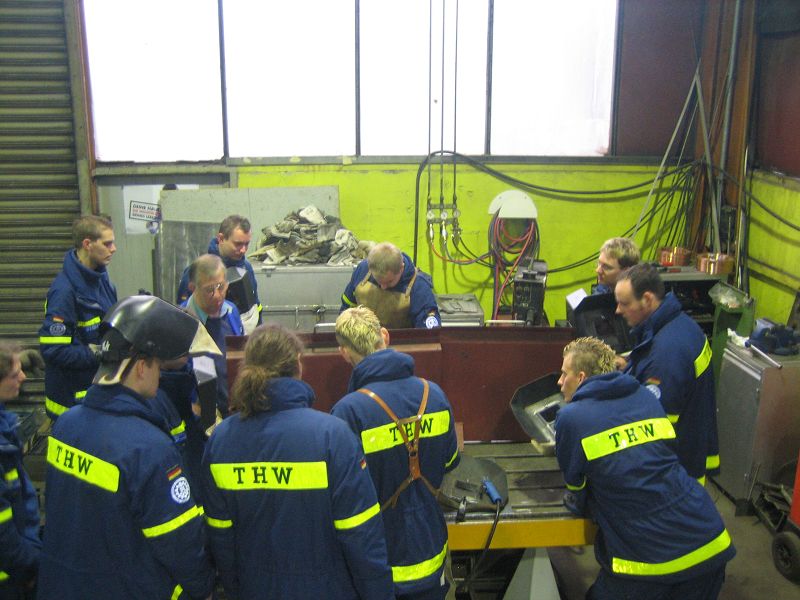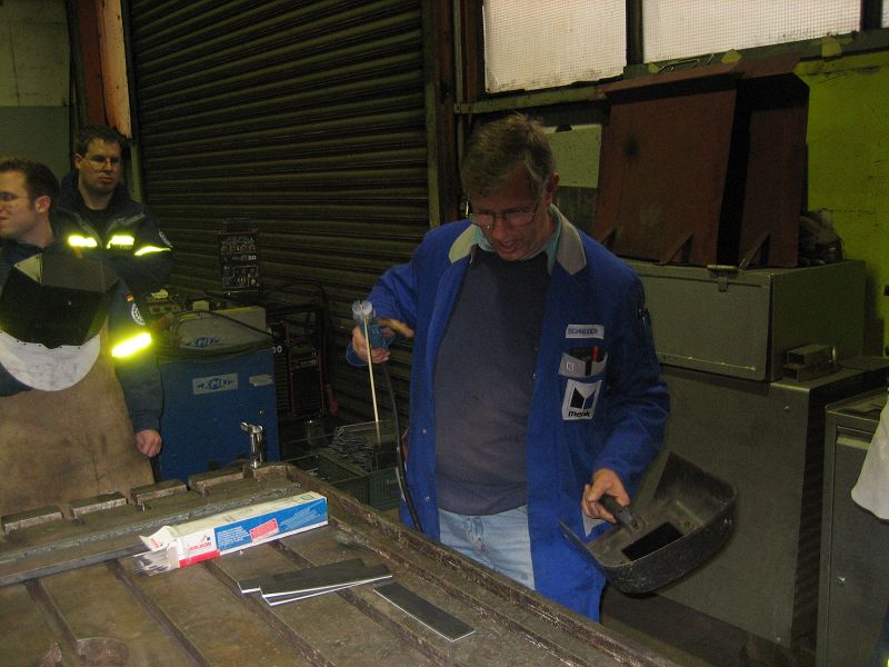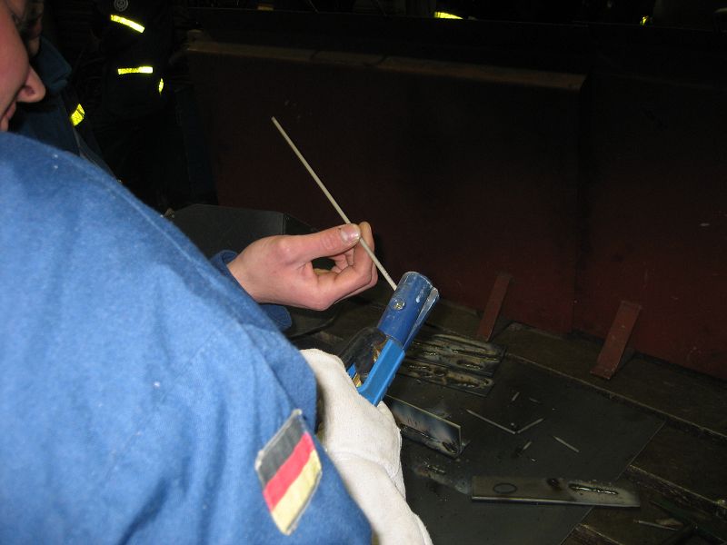 Erste Schweißversuche der Helfer