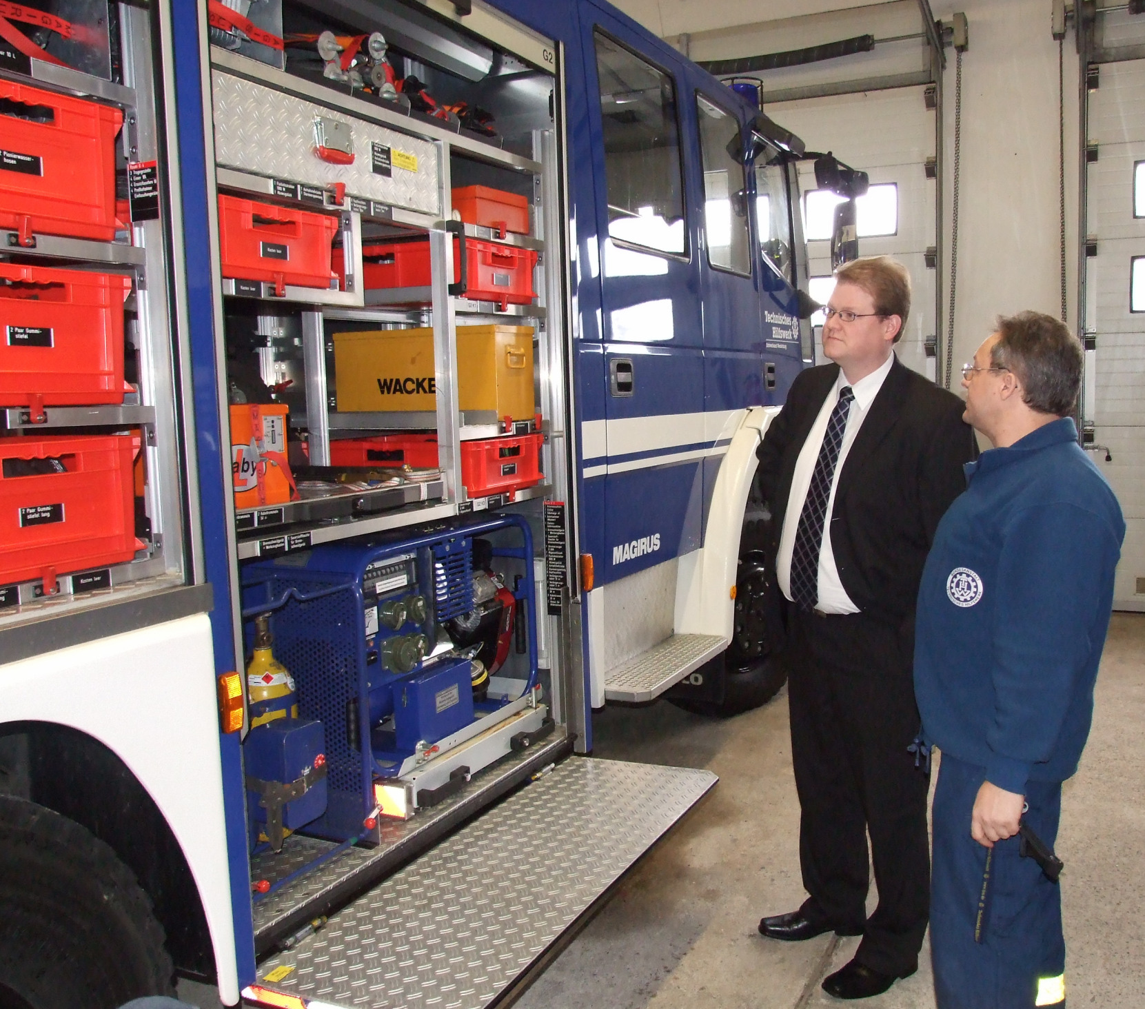 "Viele junge Männer verpflichten sich bei uns für mindestens sechs Jahre und nutzen so die Gelegenheit zur Freistellung vom Wehr- oder Zivildienst", klärte Kraft den Abgeordneten aus Mainz auf. Besonders stolz ist der Ortsbeauftragte auf die Jugendgruppe. Während eines Rundgangs erläuterte er Ausrüstung und Fahrzeuge der Fachgruppen "Führung und Kommunikation", "Räumen" sowie der Bergungsgruppen.
