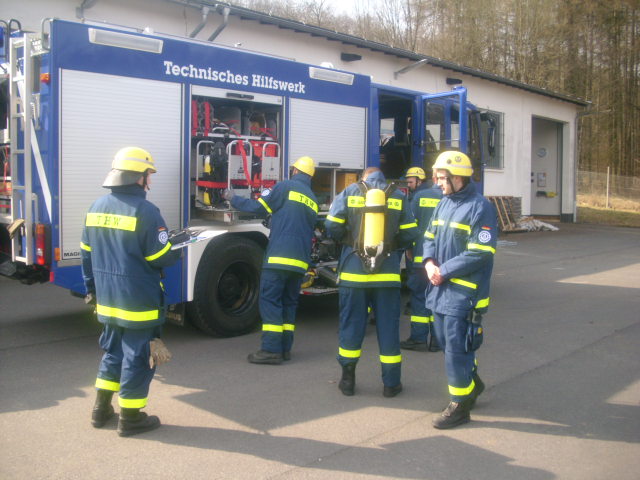 Die Helferinnen und Helfer des Ortsverband Westerburg erhielten Einblicke in die Aufgaben von Atemschutzgeräteträgern (AGT) sowie die fachlichen und persönlichen Anforderungen, die an solche Personen gestellt werden. Neben den Feuerwehren verfügt auch das THW in den Bergungs- bzw. Fachgruppen über AGT-Ausstattungen. Diese kommen zum Einsatz, wenn die Umgebungsluft so kontaminiert ist, dass der/die eingesetzte Helfer(in) nur noch mit einer der Umgebungsluft unabhängigen Schutzausstattung/Schutzmaske seinen bzw. ihren Auftrag erfüllen kann. So werden THW-Einheiten u. a. zur Unterstützung bei der Brandbekämpfung durch die Feuerwehren angefordert und eingesetzt, aber auch zur Rettung und Bergung von Personen und Sachwerten aus kontaminierten Bereichen.