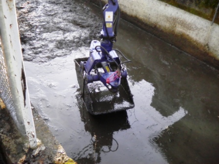 Feuerwehr und Technisches Hilfswerk befreien Löschwasserbehälter vom Schlamm