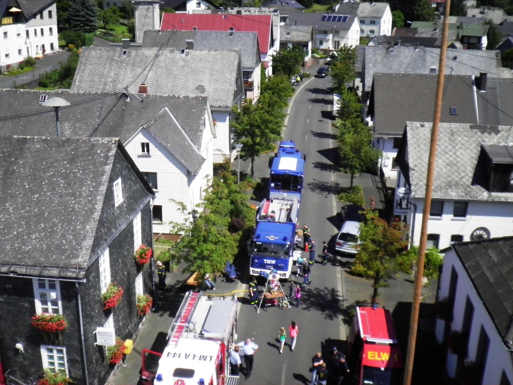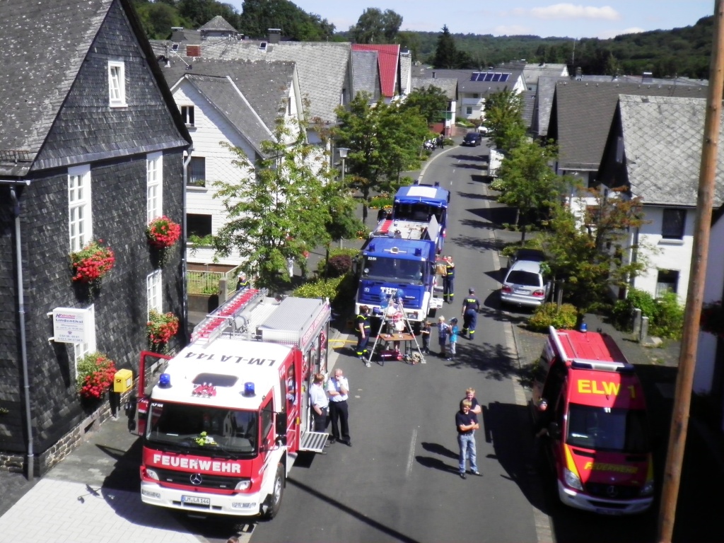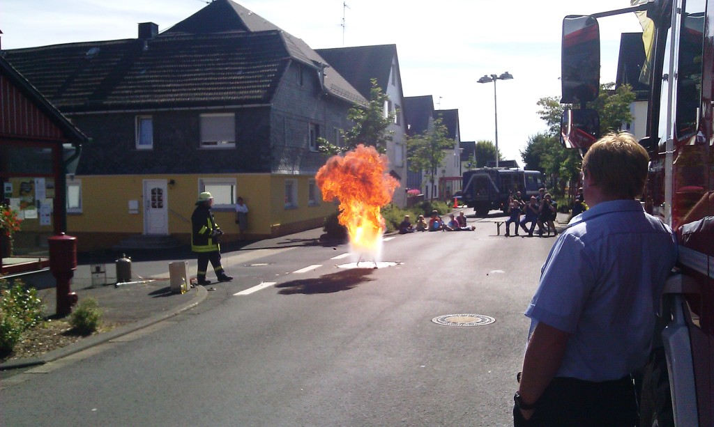 Nach der Einladung zum Mittagsessen zeigte die Feuerwehr Oberrod in einer spektakulären Vorführung, was alles innerhalb von Sekunden passieren kann, wenn sich Spraydosen über 50 Grad erwärmen. Der Zweite Teil der Vorführung bestand aus der Simulation eines "Fettbrands". Hierbei wurde die anwesende Bevölkerung direkt geschult, wie das korrekte Verhalten ist.