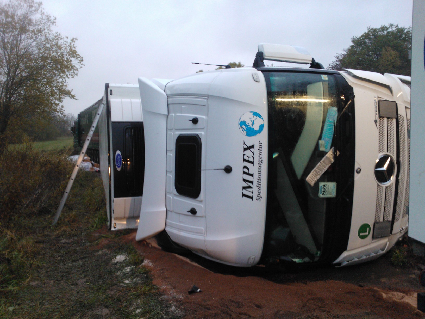 Unterstüzung bei Bergung eines havarierten Sattelzuges