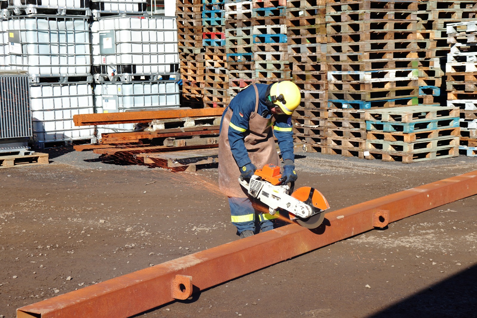 fachgerecht mittels Trennschleifgerät bzw. Schneidbrenner nieder- / zerlegen.